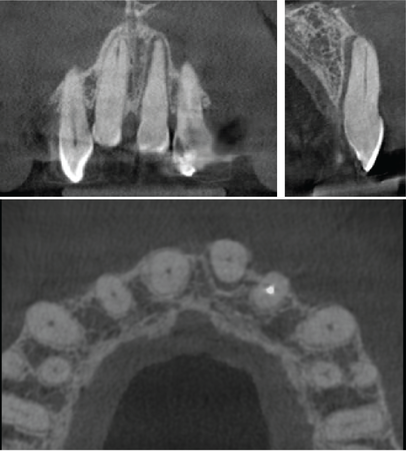 Small volume CBCT can be used additionally to 2D X-rays in the diagnosis and management of dentoalveolar trauma after a fall, accident or other mechanism of injury. CBCT is able to show luxation, root fractures and alveolar fractures.