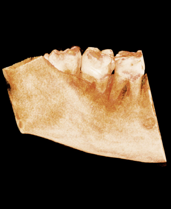 Cropped panoramic of LR6-8 showing pulp stones in the LR6, LR7 and LR8.