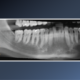 Cropped panoramic of LR6-8 and cross section of alveolar ridge of LR6 region showing patent root canals, normal periodontal ligament width and lamina dura. Also seen is the enlarged follicle space associated with the LR8.